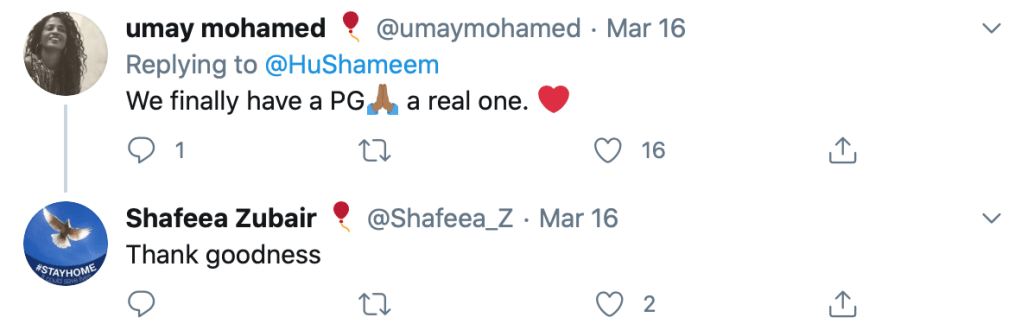 The problem of his release attracted a lot of negative attention to the government and the PG office from people who were unhappy this development. Due to this, PG Mohamed Shameem, even made a tweet. In this tweet, PG Mohamed Shameem stated that in the past, people who had blasphemed against religion will have action taken against them, and action against such blasphemers will continue to happen. And he stated that trying to spread discord without trying to find the truth in matters was something that he found sad.