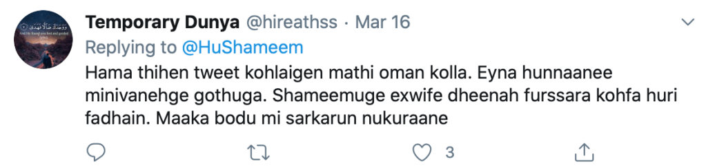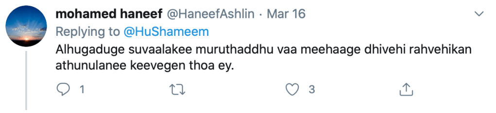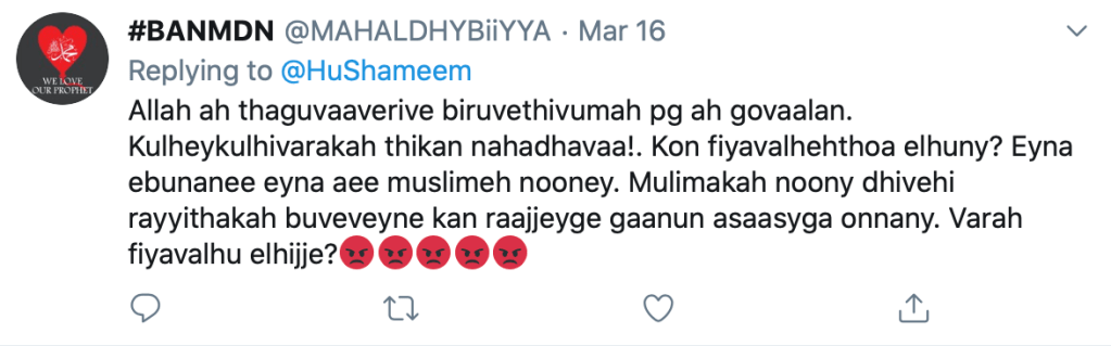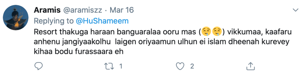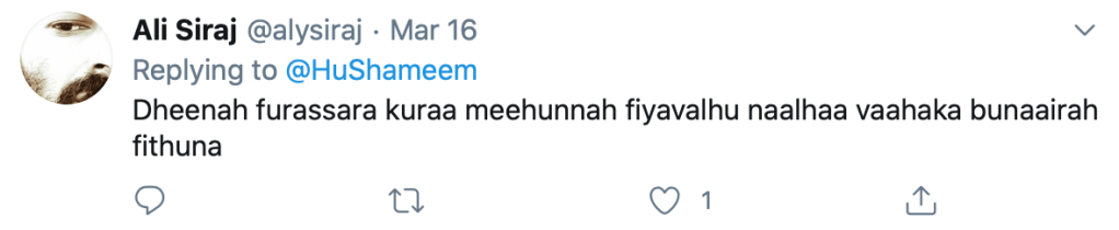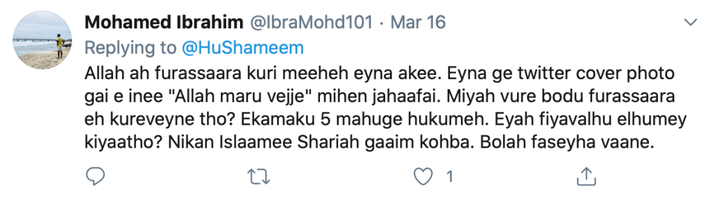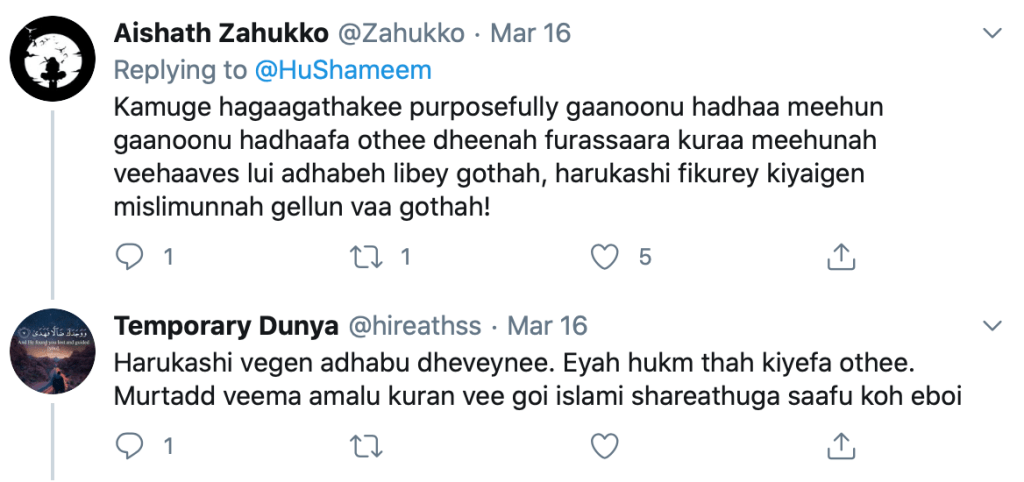 - Thuhairu (October 4, 2019) [6 likes] – Wonder if they’ll start arresting the people from Malé who insult Islam?